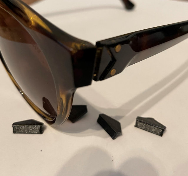 Armani Sunglasses (ea4113). A 3x4mm 3D print saved the whole part (the Temple) that otherwise would have had to be replaced.